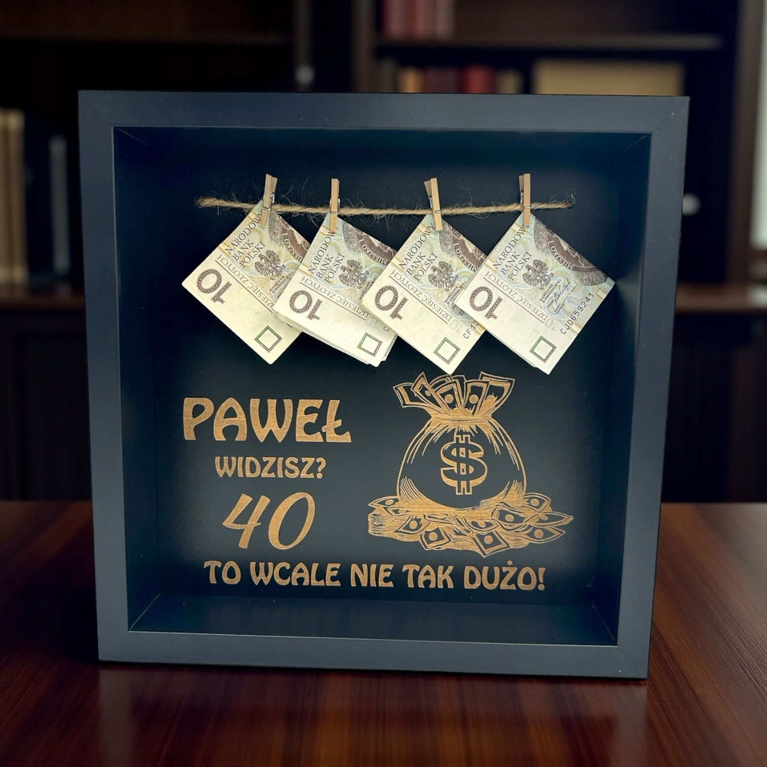 Ramka 3D CZARNA śmieszny prezent na pieniądze na 30 40 50 60 urodziny S33