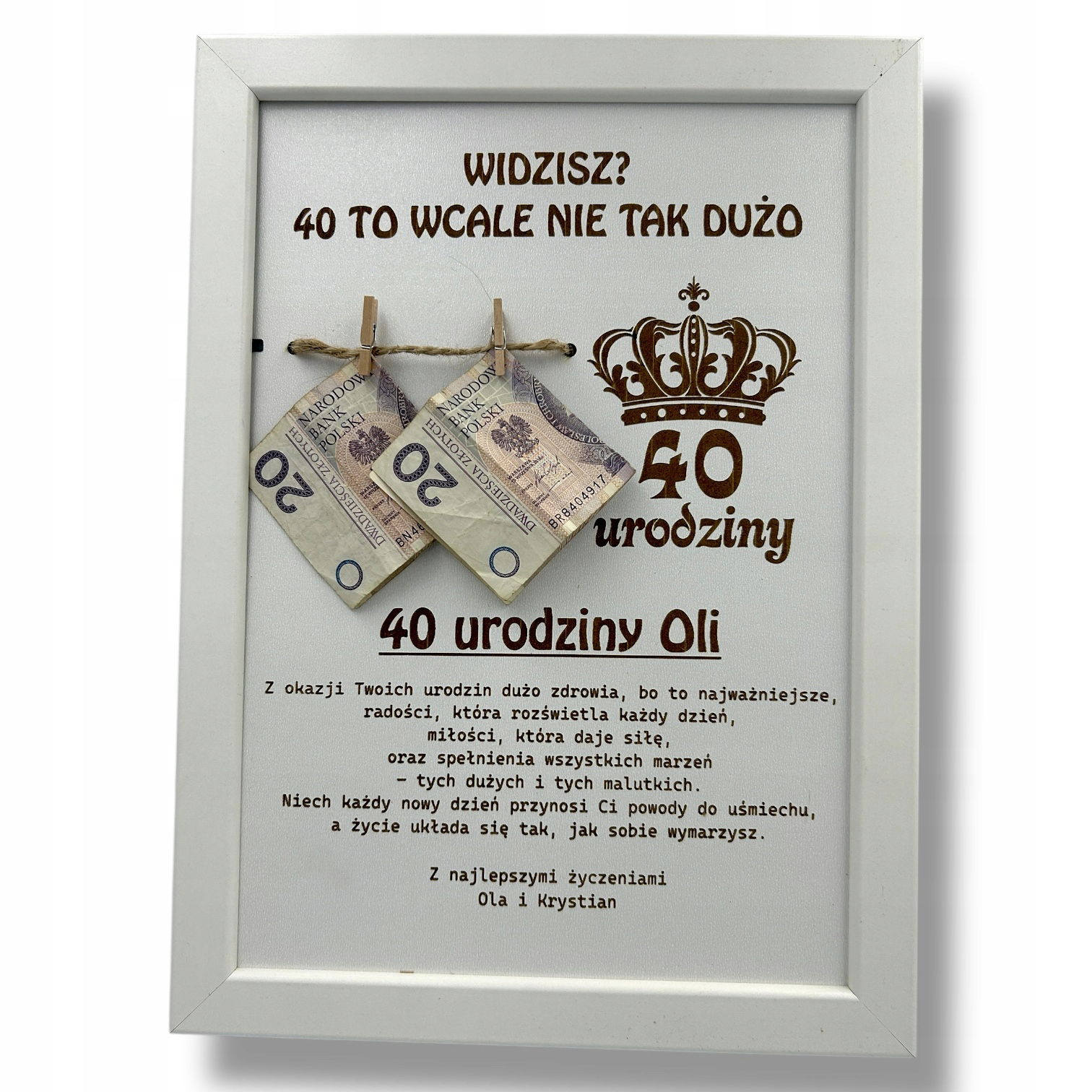 Ramka BIAŁA śmieszny prezent na pieniądze na 30 40 50 60 urodziny S35