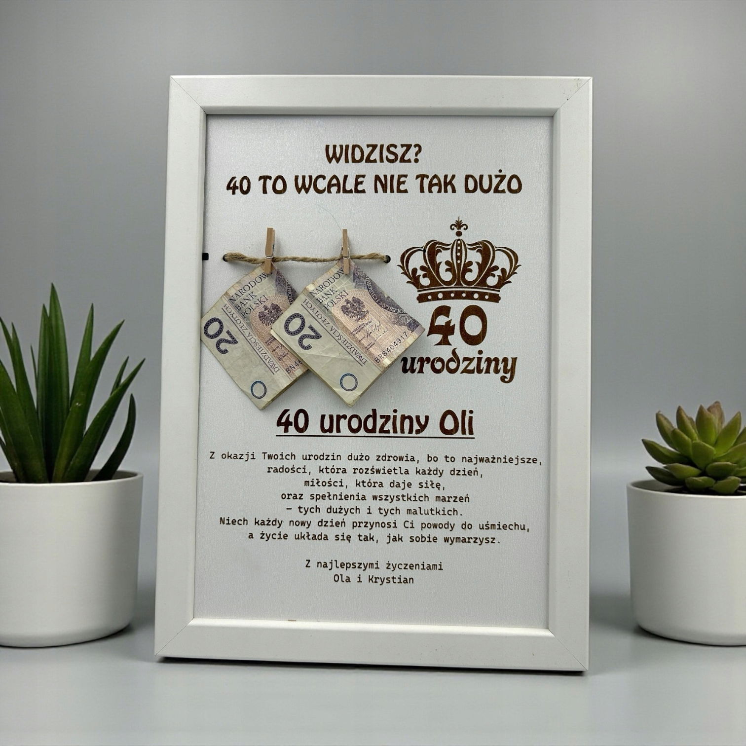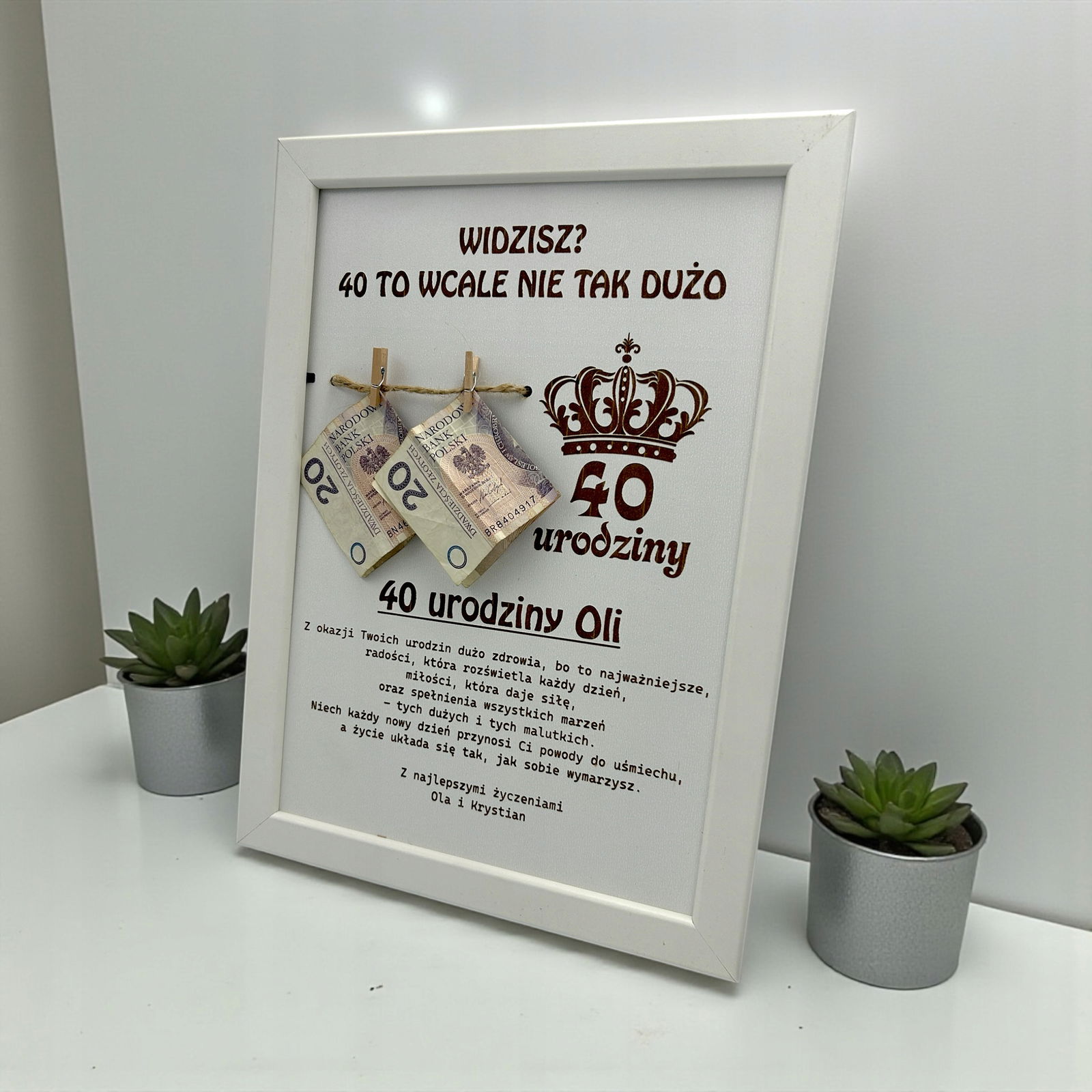 Ramka BIAŁA prezent na pieniądze na 30 40 50 60 urodziny