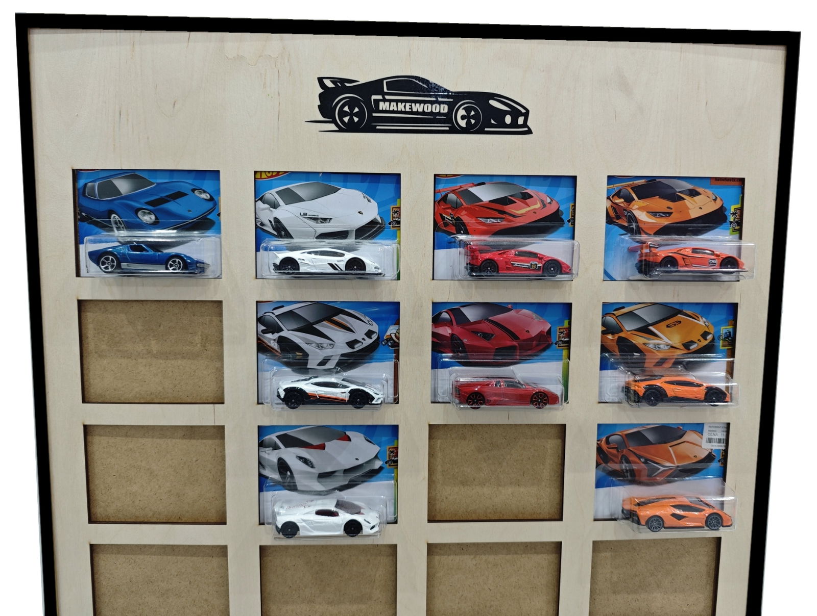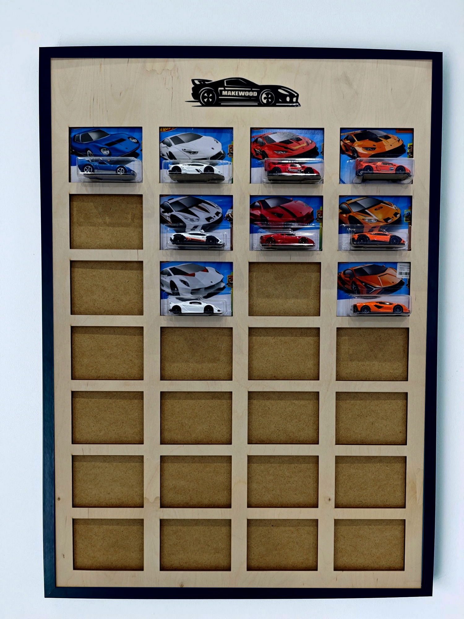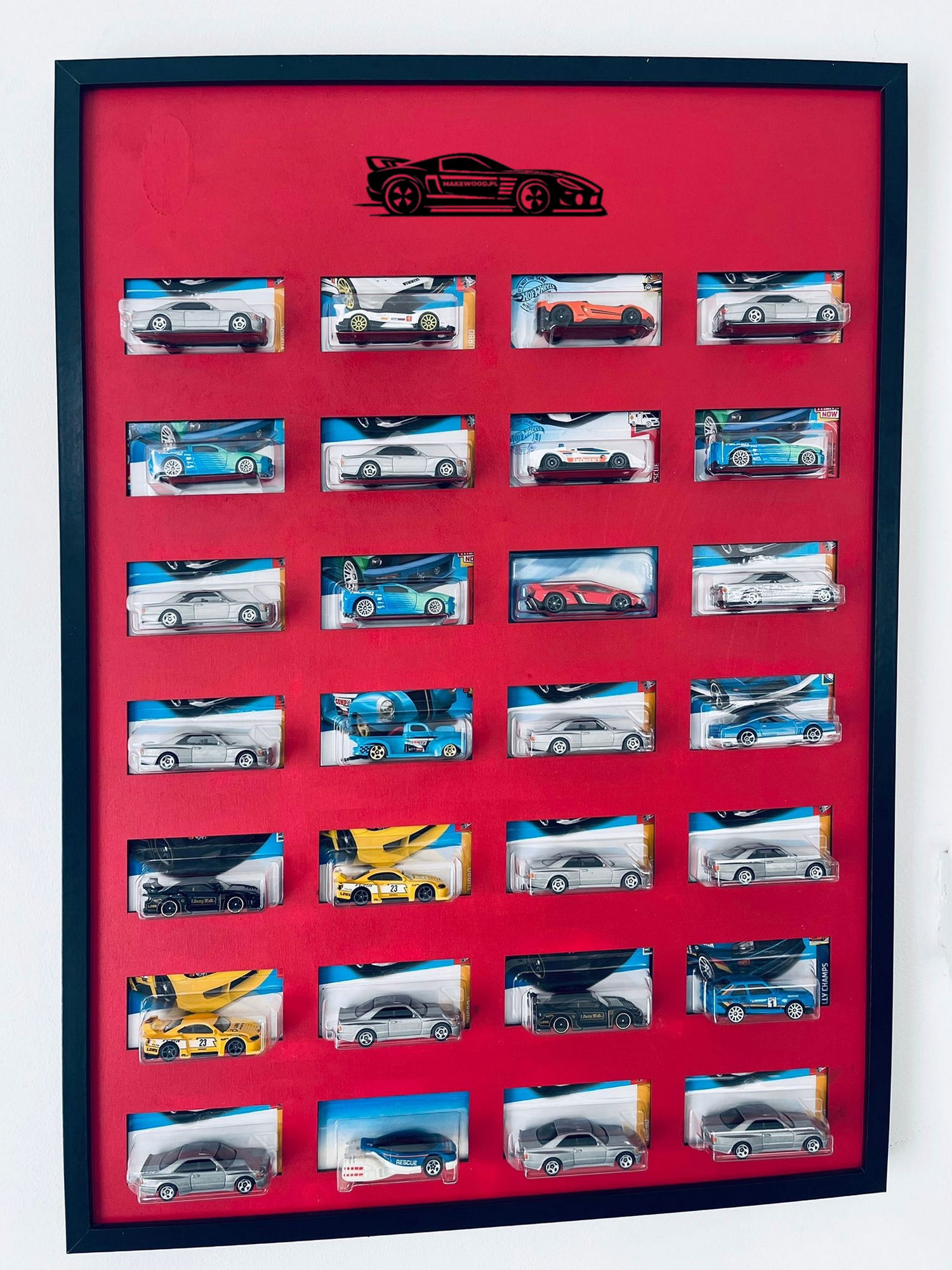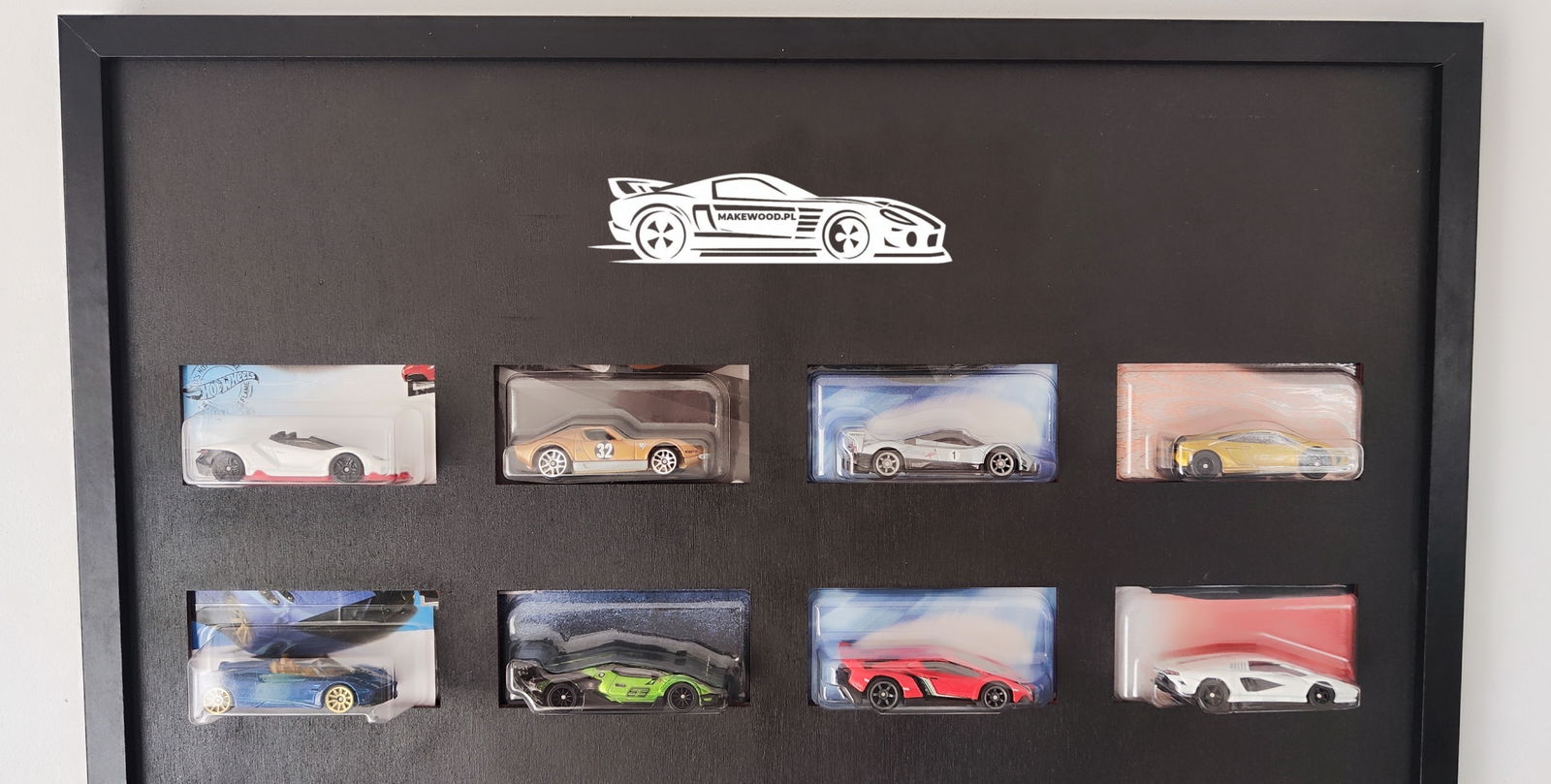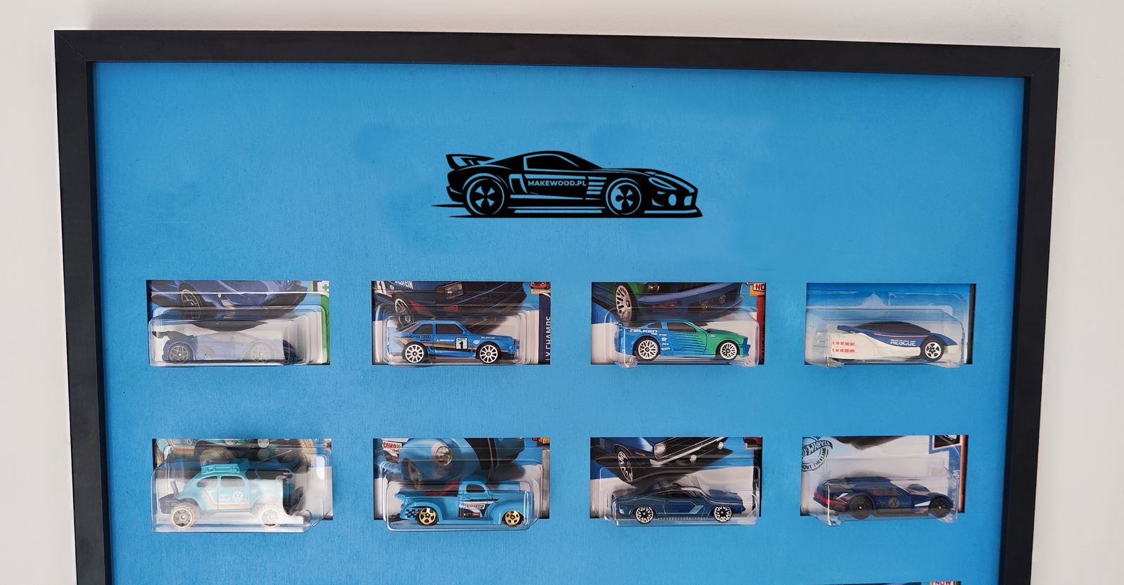 Ramka półka do modeli Hot Wheels main duże okienka na 28 modeli w blistrach
