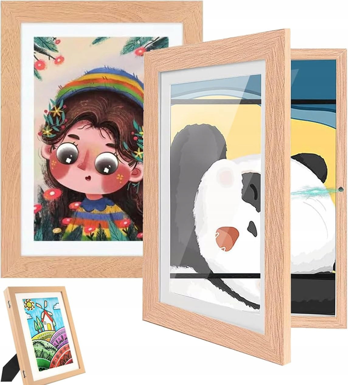 Atildp 2 ramki na zdjęcia A4, 21 x 30 cm, do rysowania dzieci, drewniana ramka na zdjęcia, składana, do napełniania i prezentacji dzieł sztuki (natura, 2 sztuki)