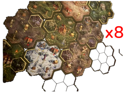 Zestaw 8 ramek/podstawek pod kafle terenu do fanowskiej wersji planszowej Heroes of Might & Magic III. Stabilizują kafle, ułatwiają rozmieszczenie i poprawiają estetykę gry. Solidne i trwałe wykonanie.