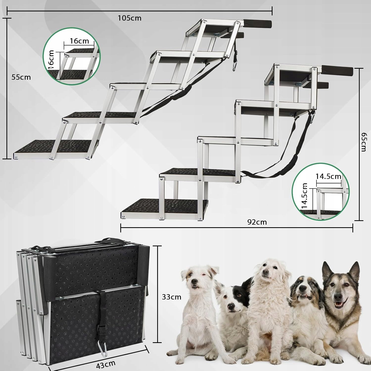 Rampa schody dla psa samochodowa, składana, antypoślizgowa, 5 STOPNI, 70kg
