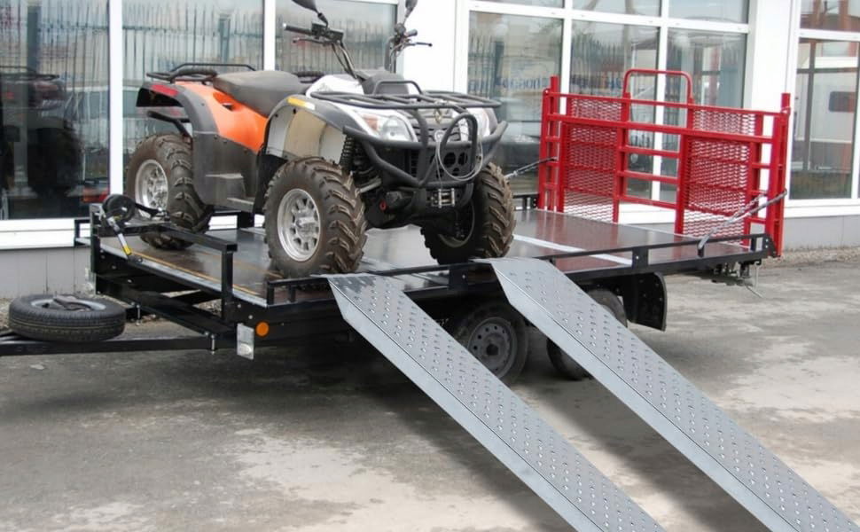 ✅Z profilem zapewniającym doskonałą przyczepność i trzymanie, wytrzymuje obciążenie do maks. 200 kg na rampę, szeroki bieżnik, niska waga, idealny pomocnik do codziennego użytku, łatwy załadunek motocykli, kosiarek do trawy, skuterów, sprzętu budowlanego, wózków inwalidzkich itp., bezpieczne i wygodne użytkowanie, górny ogranicznik zapewniający bezpieczne pozycjonowanie, powierzchnia perforowana antypoślizgowa, wysokiej jakości i stabilna konstrukcja stalowa, nadaje się do przyczep kempingowych i przyczep.