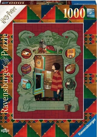 Puzzle 1000 elementów Ravensburger z postaciami z filmów i książek o Harrym Potterze unikalna seria przedstawiająca sceny z życia Harry'ego Pottera oraz innych bohaterów z tego uniwersum. Po ułożeniu puzzle mają wymiary 70 x 50 cmZawartość:Układanka z motywem Harry'ego Pottera i rodziny Weasleyów (1000 elementów).Po ułożeniu puzzle mają wymiary 70x50 cm. Są przeznaczone dla osób powyżej 14. roku życia.Ravensburger jest największym producentem puzzli na świecie, które wytwarza od ponad 120 lat.• Puzzle marki Ravensburger posiadają antyrefleksyjną powłokę - są wykonane z opatentowanego, grubego kartonu z miękką podściółką (obrazek nadrukowany jest na papierze o strukturze włókna lnu, które ogranicza odbijanie światła, ułatwia układanie, a sam obrazek, niezależnie od wielkości puzzli, jest wyraźniejszy).• Ponadto dzięki opatentowanej technologii SoftClick każdy pojedynczy element puzzli Ravensburger ma unikalny kształt i pasuje wyłącznie w jedno miejsce.• Kształty puzzli są różnorodne dzięki ręcznie wykonanej sztancy.• Puzzle Ravensburger są odporne na zginanie.