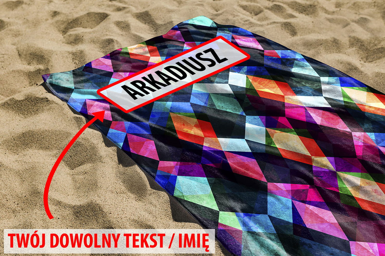 - Indywidualny napis na ręczniku.