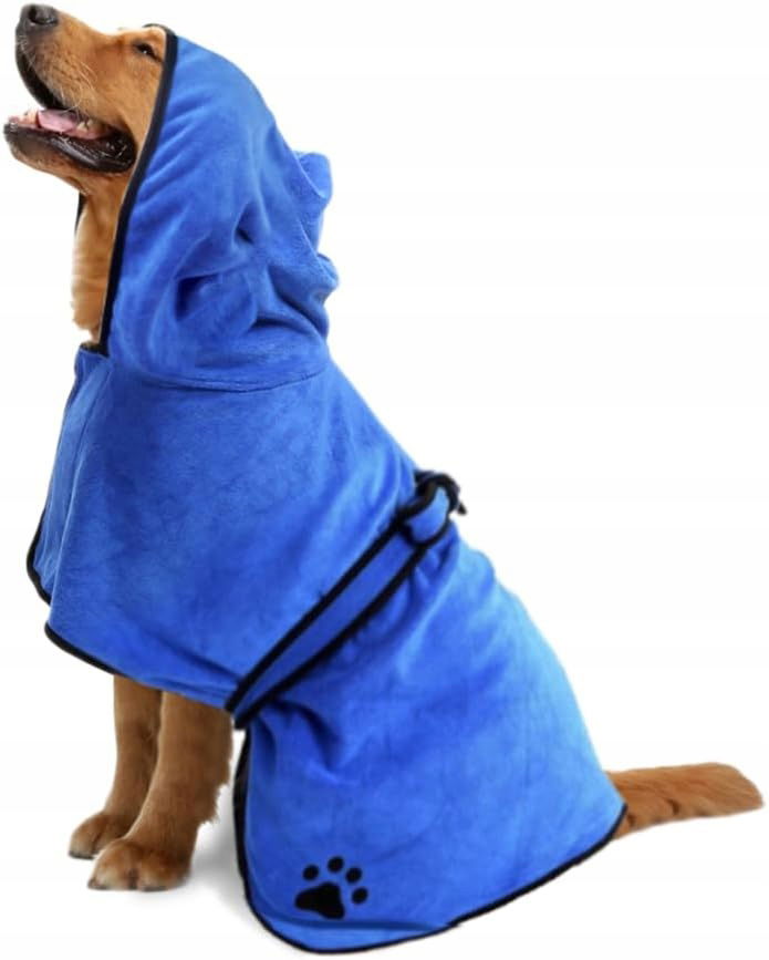 Ręcznik dla psa z kapturem chłonny miękki szybkoschnący niebieski M