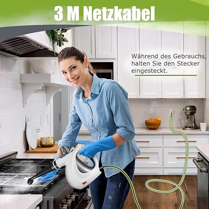 Wydajny odkurzacz parowy: para pod wysokim ciśnieniem o ciśnieniu 3 barów odpowiada ciśnieniu 3 kg, może rozpylać 1,2 m, dzięki czemu nasze ręczne urządzenie do czyszczenia parą jest więcej niż wystarczające do zdmuchnięcia oleju, kurzu i plam.