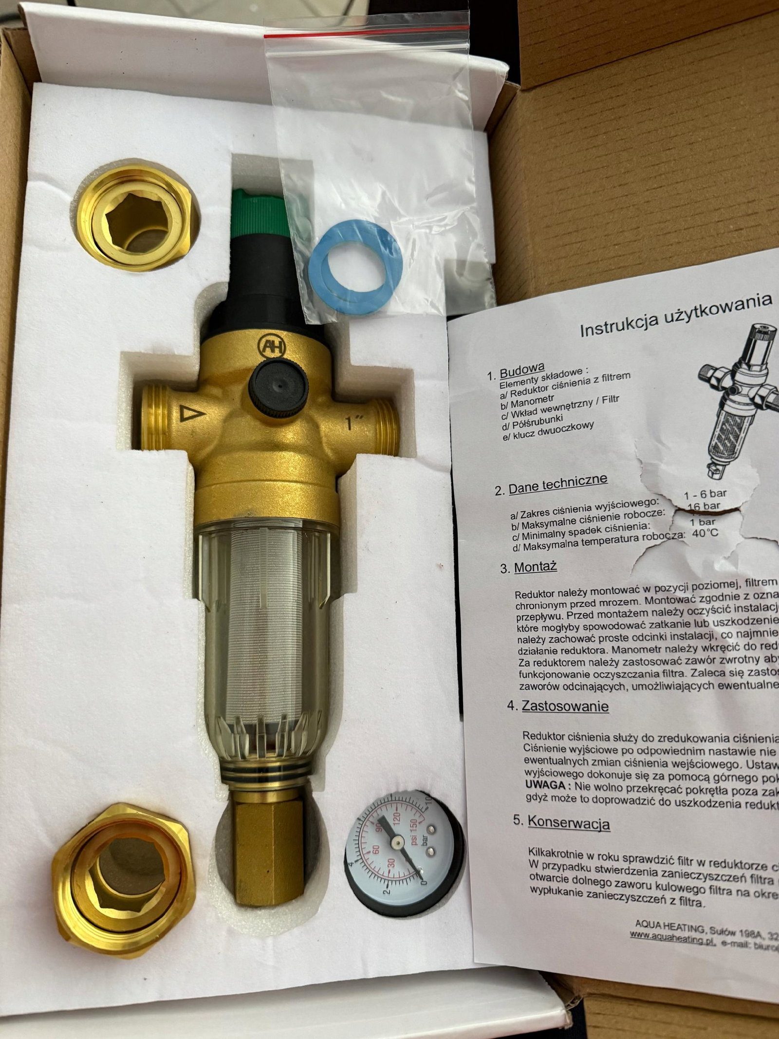 REDUKTOR CIŚNIENIA WODY 1" Z FILTREM SAMOCZYSZCZĄCYM STAL NIERDZEWNA FIRMY AQUA HEATING