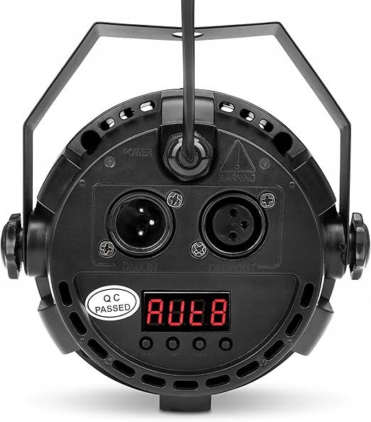 - Możliwość pracy DMX w trybie 4- lub 7-kanałowym, 4 przyciski i wyświetlacz, 8 programów automatycznych