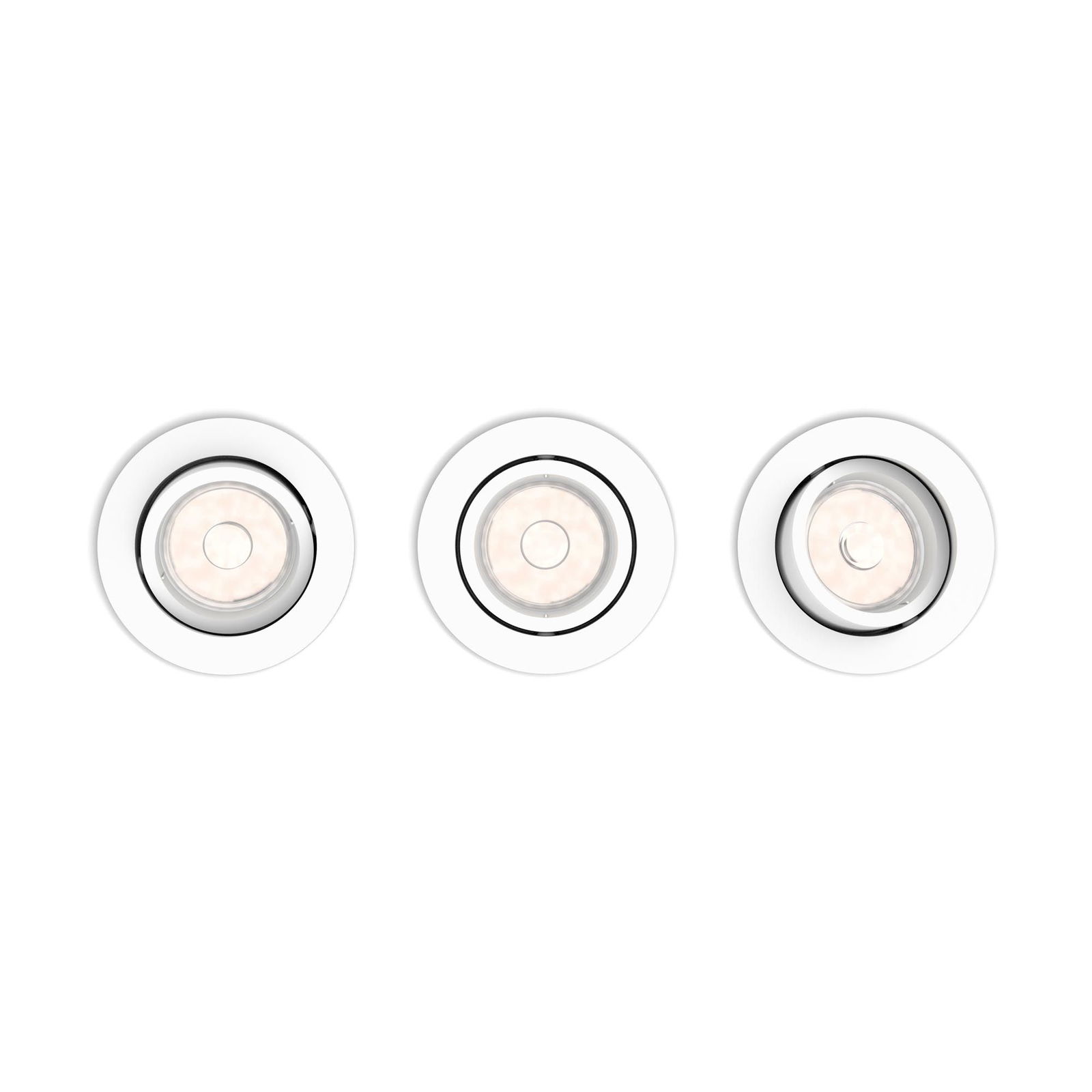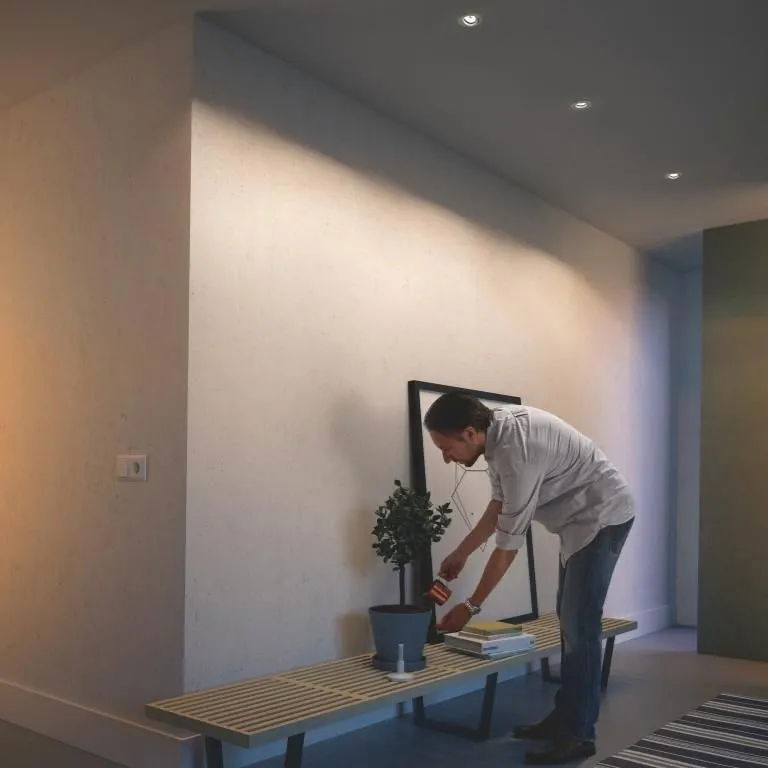 Zestaw trzech podtynkowych opraw sufitowych Philips Enneper to nowoczesne rozwiązanie do oświetlenia wnętrz. Prosty, okrągły kształt i elegancki biały kolor sprawiają, że oprawy pasują do każdego stylu aranżacji, od minimalistycznych po bardziej klasyczne. Regulowany pierścień wewnętrzny pozwala skierować światło dokładnie tam, gdzie jest potrzebne, co zwiększa funkcjonalność oświetlenia.