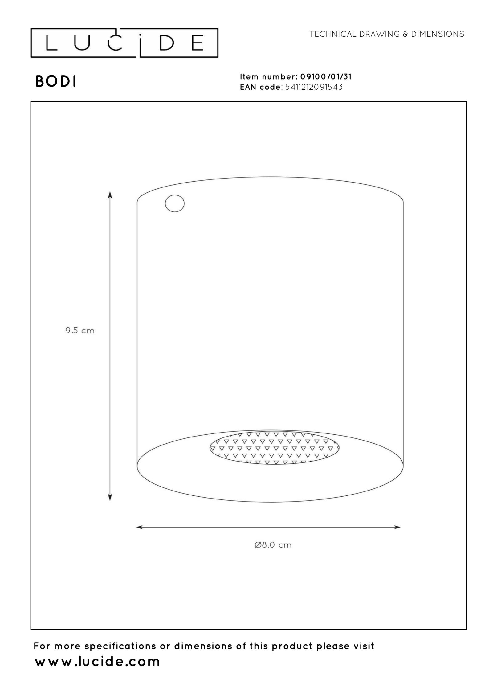 Nowoczesny spot sufitowy Lucide BODI to eleganckie oświetlenie w minimalistycznym stylu. Wykonany w całości z aluminium, prezentuje się bardzo solidnie, a jego kompaktowy cylindryczny kształt (średnica 8 cm, wysokość 9,5 cm) sprawia, że łatwo zamontujesz go nad drzwiami, w przedpokoju lub kuchni. Pasuje na tradycyjną żarówkę GU10 (do 50 W) – możesz wybrać tradycyjną halogenową lub nowoczesną LED-ową. Dodatkowo, konstrukcja umożliwia stosowanie zewnętrznych ściemniaczy.