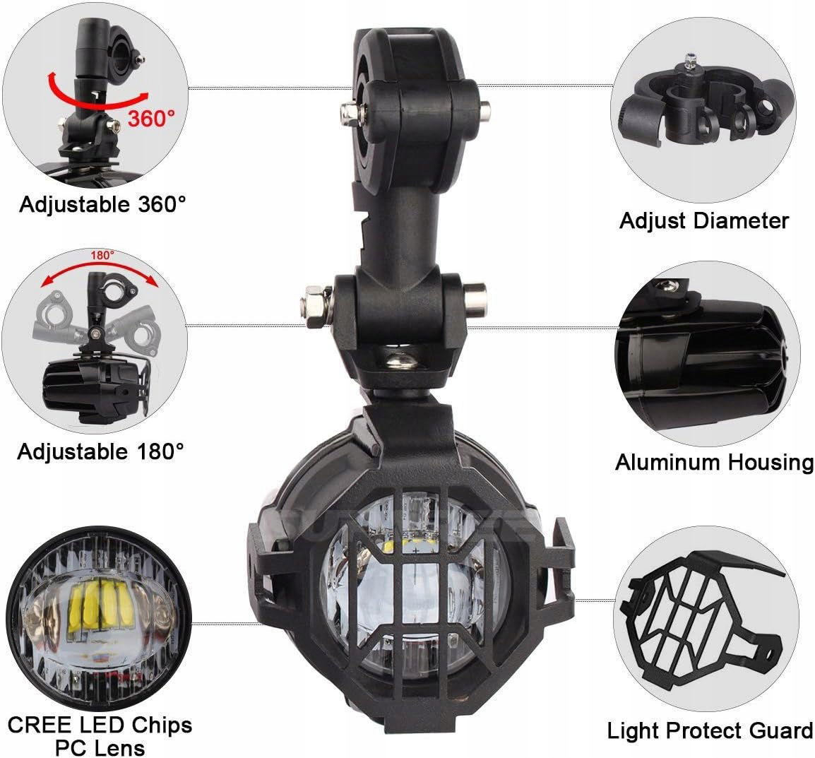 Uniwersalne zastosowanie do motocykli. Moc 40 W, napięcie DC10-30 V i wodoszczelność IP67 gwarantują niezawodność. Temperatura barwowa 6000 K daje jasne światło.