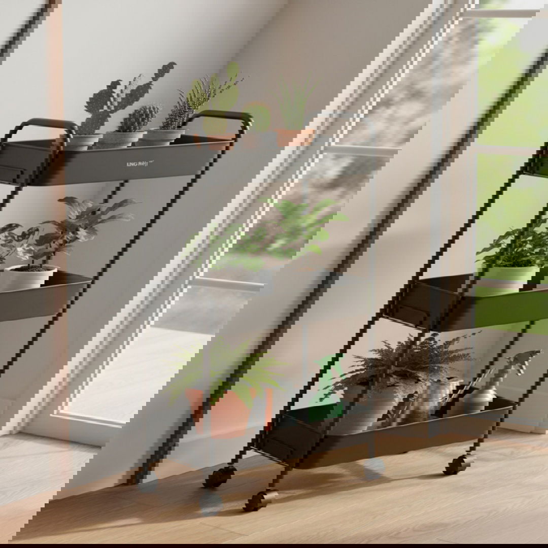 Regał został zaprojektowany z myślą o maksymalnej mobilności. Wyposażony w kółka obrotowe 360° oraz funkcję blokady, gwarantuje pełną kontrolę nad przemieszczaniem i stabilnością. Trzy przestronne półki oferują dużo miejsca na napoje, akcesoria kuchenne, kosmetyki, rośliny czy ręczniki — w zależności od potrzeb użytkownika.