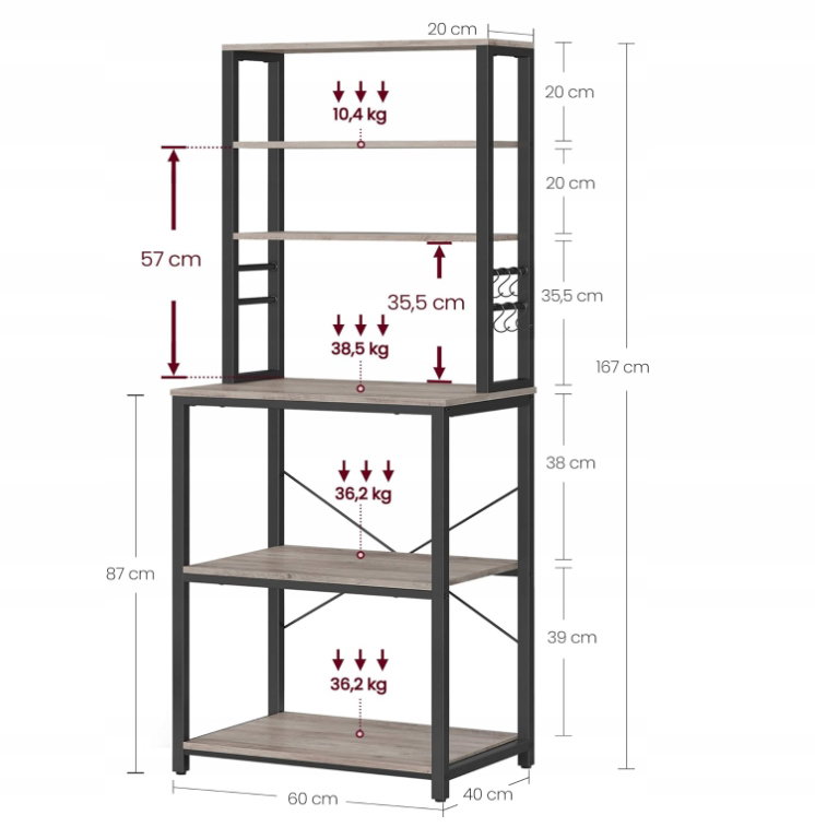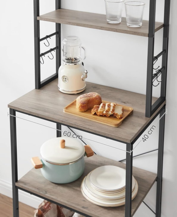- ✴️Nadaje się do małych pomieszczeń – Dzięki wymiarom 40 x 60 x 167 cm ten regał do kuchenki mikrofalowej z 6 poziomami idealnie nadaje się do małych kuchni lub jako mini barek do przygotowania kawy. Dzięki temu regałowi do przechowywania optymalnie wykorzystasz miejsce.