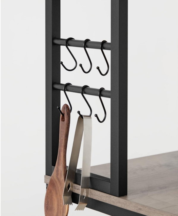 - ✴️Przestronny regał – Oszczędzaj miejsce na blacie roboczym dzięki temu przestronnemu regałowi kuchennemu z 3 górnymi półkami na słoiki na przyprawy, 3 dużymi dolnymi półkami na urządzenia kuchenne i 6 haczykami w kształcie litery S na przybory. Ten wielofunkcyjny regał wprowadzi porządek do Twojej kuchni!