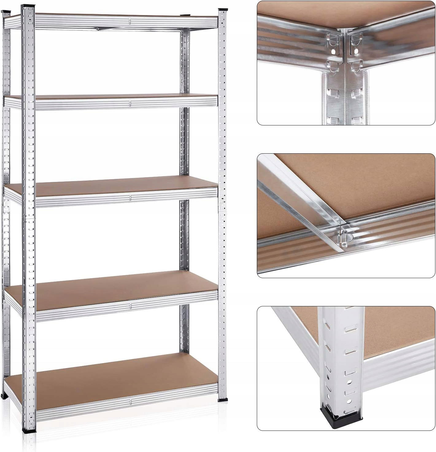 - ➡️ Trwałe i stabilne – półki są wykonane ze stalowej ramy, a każda półka może wytrzymać obciążenie do 175 kg. Dołączony zestaw zapobiegający przewróceniu się może przymocować półki do ściany, dzięki czemu są bardziej stabilne i bezpieczne.