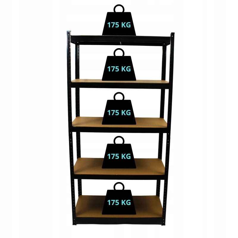 Regał magazynowy METALOWY 5 półek 180x90x40 CZARNY warsztatowy MOCNY 875kg