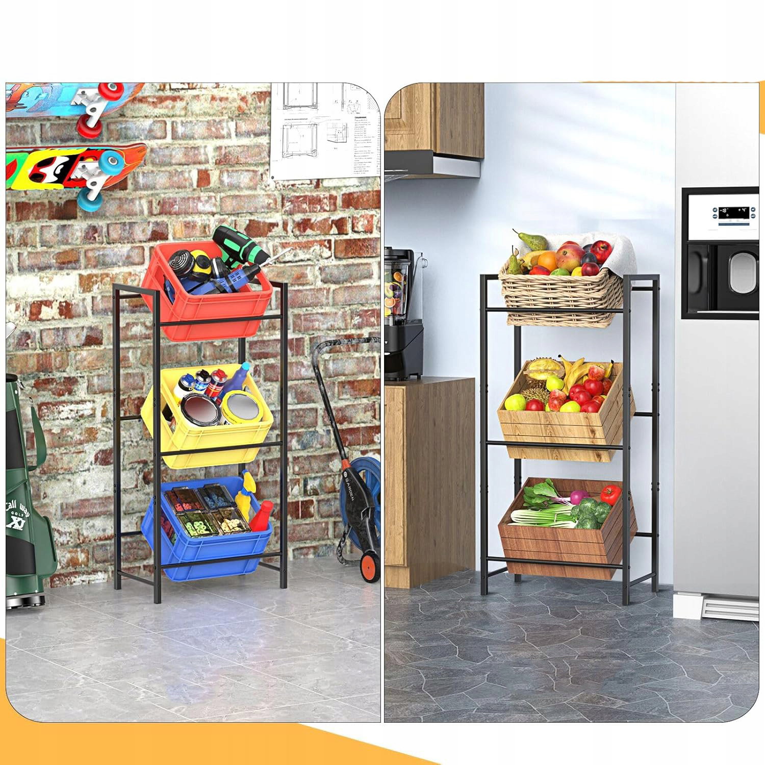 Dzięki odpowiednim wymiarom i solidnej budowie regał pasuje do różnych typów skrzynek – zarówno plastikowych, jak i drewnianych. Idealnie sprawdzi się w kuchni, spiżarni, garażu czy pomieszczeniach gospodarczych, pomagając utrzymać porządek w każdej przestrzeni.