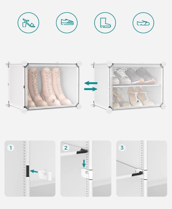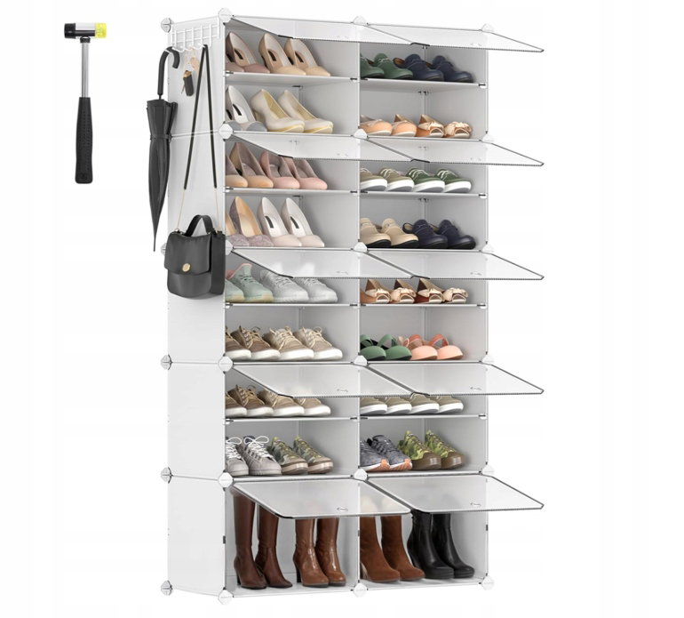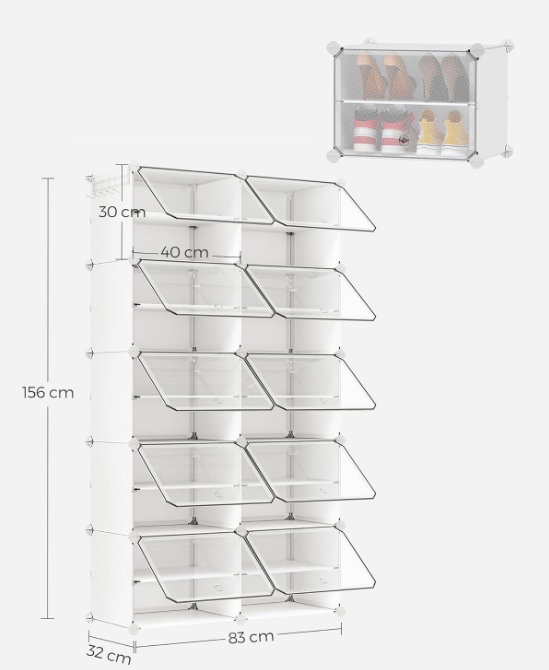 - ✴️Przestronny z 10 przegródkami: w tym organizerze na buty jest miejsce na do 40 par butów, od wysokich obcasów, kozaków, butów sportowych, butów rekreacyjnych aż po kapcie. Boczne haczyki mogą być używane do zawieszenia toreb lub smyczy