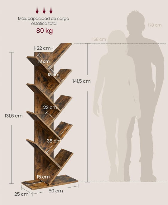 Regał na drzewo, 8-poziomowy regał podłogowy VASAGLE LBC11BX POWYSTAWOWY
