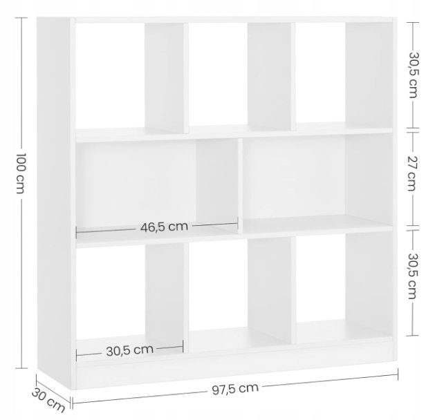 Regał na książki, 8 otwartych półek 30 x 97,5 x 100 cm VASAGLE LBC52WTV2