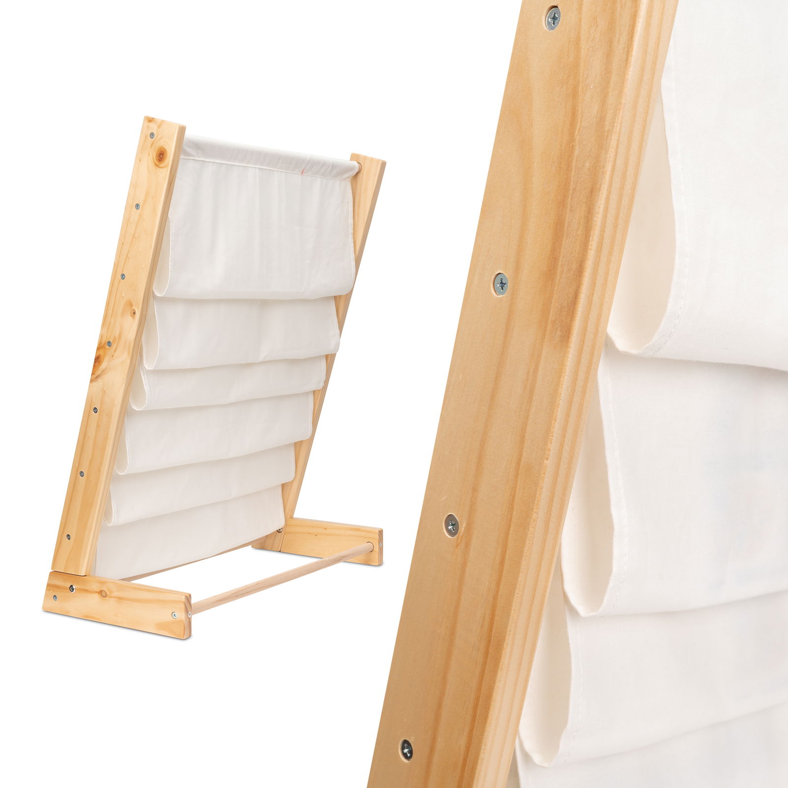 - regał na książki z 6 materiałowymi półkami
