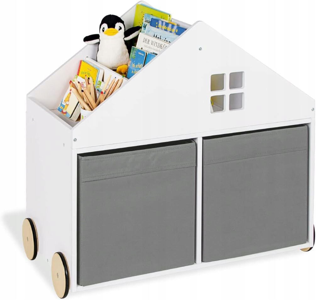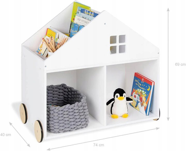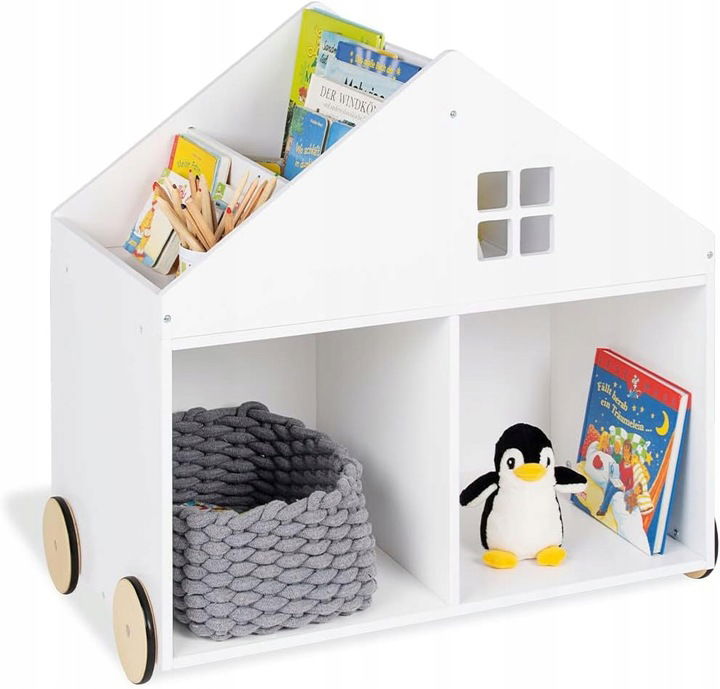 REGAŁ NA KSIĄŻKI DLA DZIECI Z ROLKAMI DOMEK PINOLINO