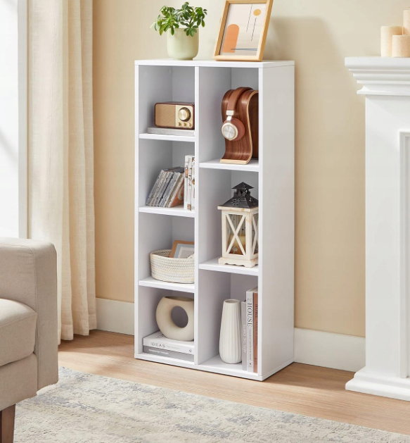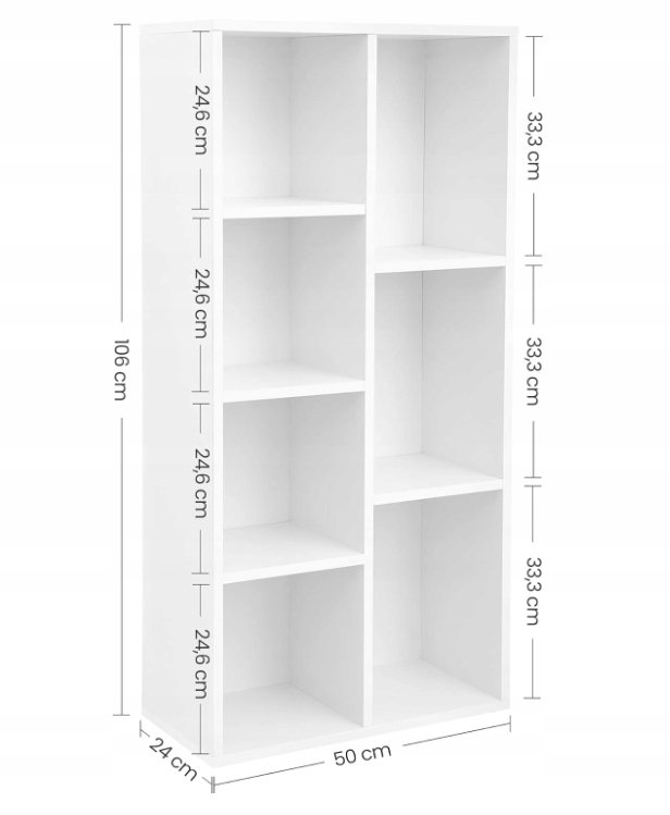 - ✴️Zakres dostawy: biały wolnostojący regał o wymiarach 50 x 24 x 106 cm z 7 otwartymi przegrodami i zabezpieczeniem przed przewróceniem dla większej stabilności, który może być używany pionowo jako regał na książki lub poziomo jako ławka telewizyjna