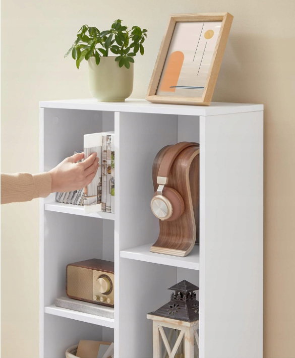 - ✴️Od książek po muzykę i filmy: od Charlesa Dickensa po Mozarta po Davida Leana, regał ma 7 otwartych przegródek, w których można wypełnić książkami, płytami CD i DVD, dzięki czemu możesz odkrywać różne miejsca i godziny bez wychodzenia z mieszkania