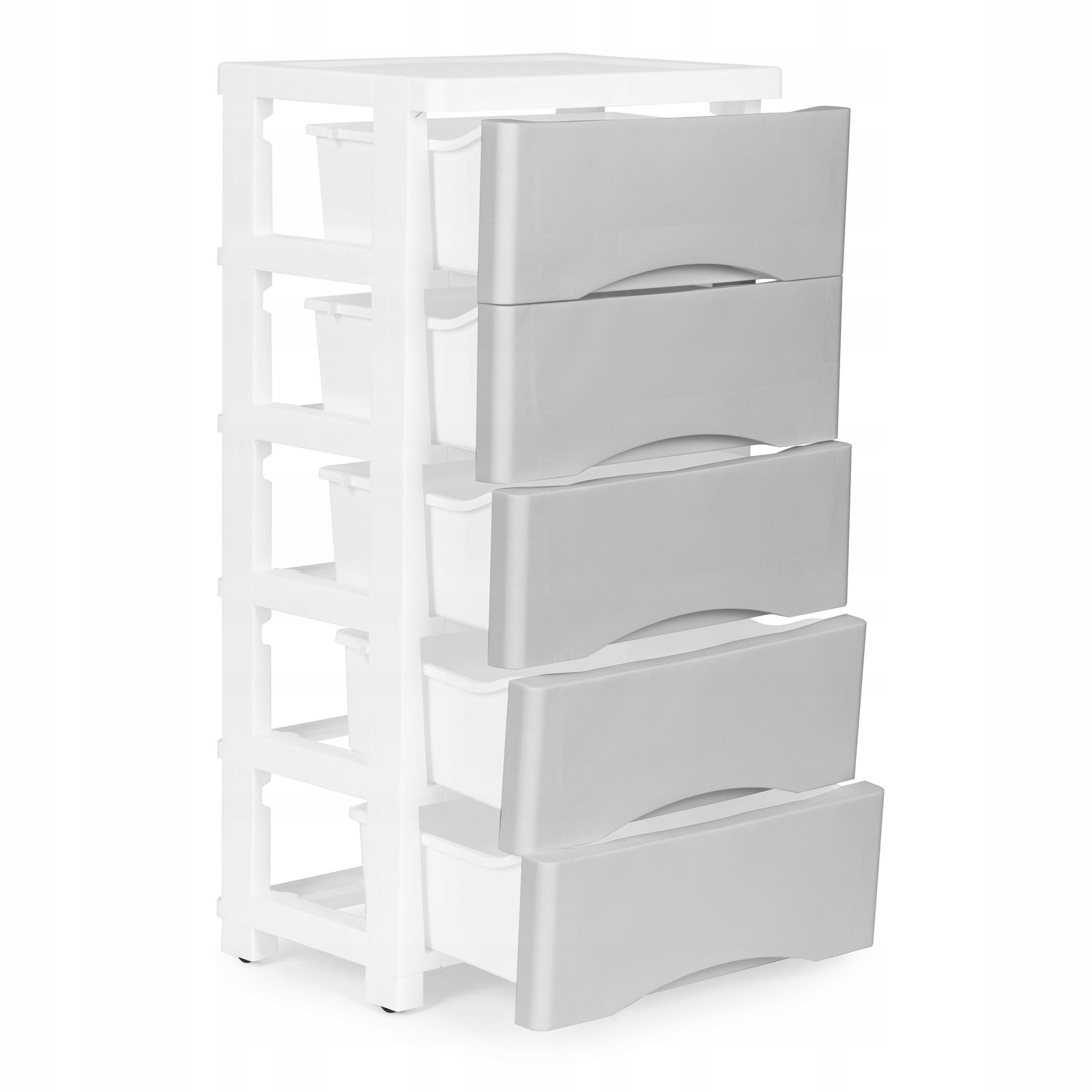 REGAŁ PLASTIKOWY SZAFKA Z 5 WYSUWANYMI SZUFLADAMI NOGI Z KÓŁKAMI