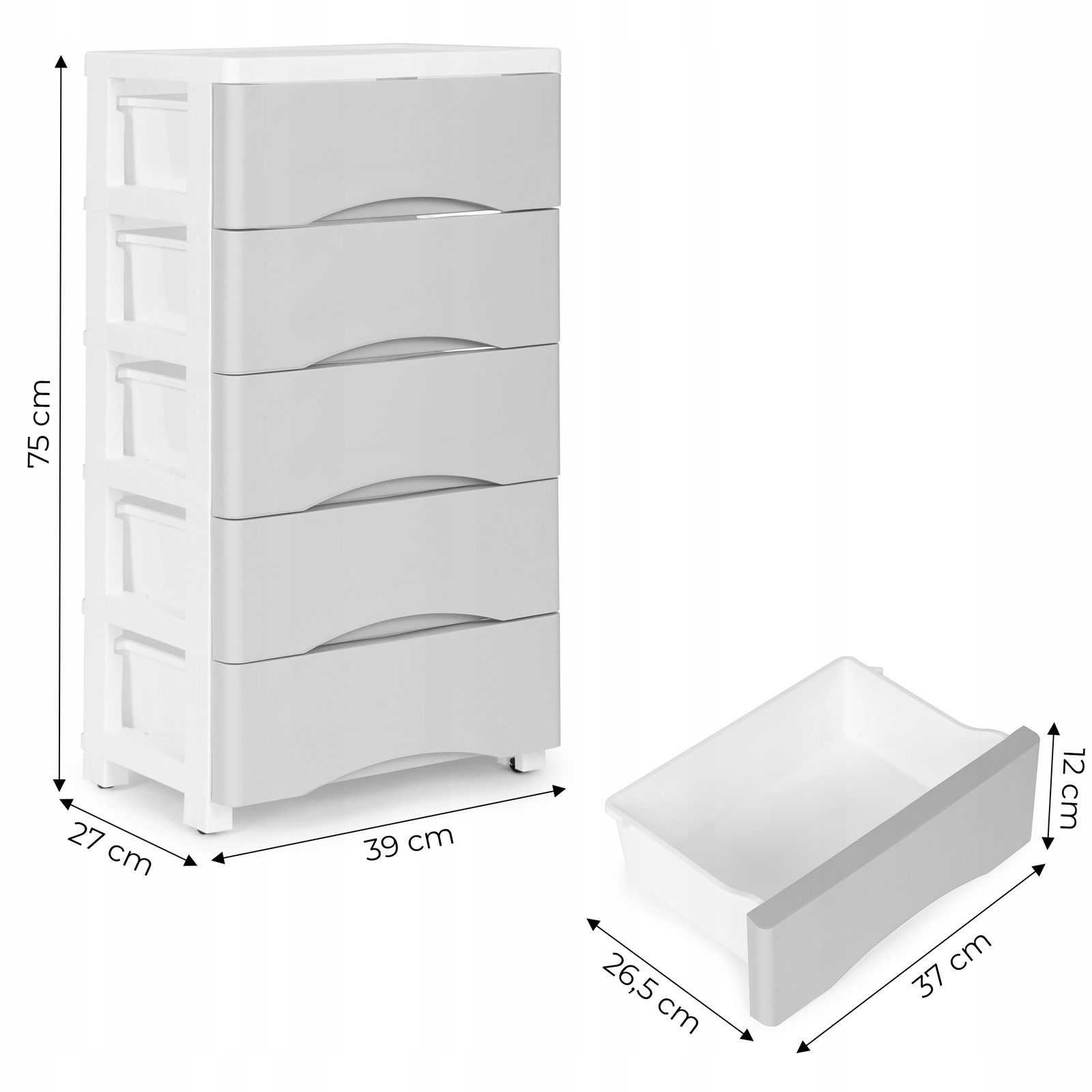 - Wymiary szuflady: 26,5 x 37 x 12 cm