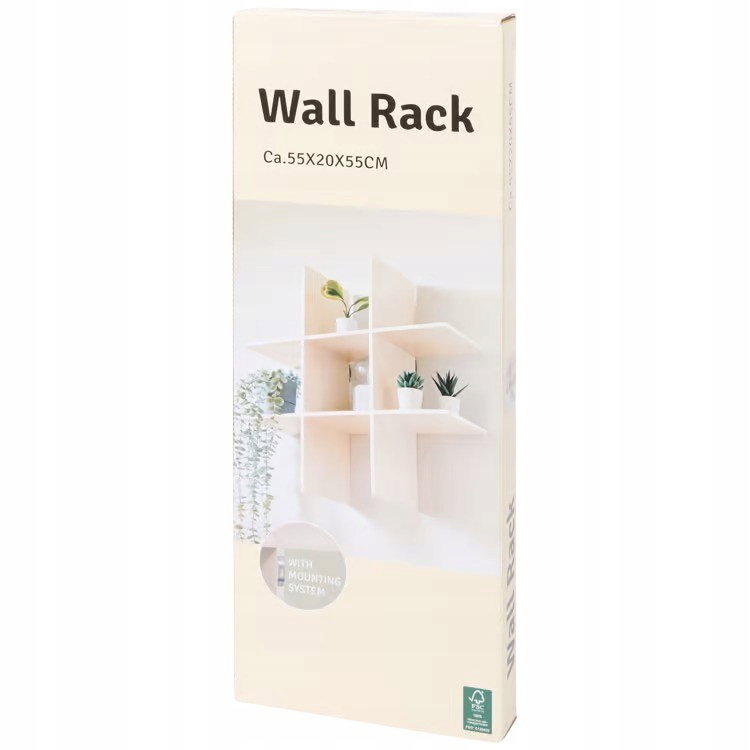 REGAŁ ŚCIENNY SZACHOWNICA PÓŁKI DREWNIANY 9 PRZEGRÓD 55 X 20 X 55 CM BEŻOWY