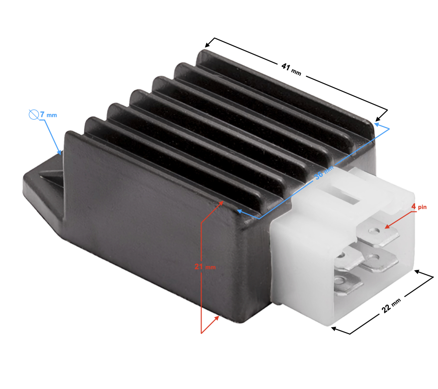 Regulator napięcia dedykowany dla pojazdów ATV Rocky/Thor 125 odpowiada za stabilizację parametrów elektrycznych w instalacji pojazdu. Jego konstrukcja zapewnia efektywne odprowadzanie ciepła, co jest kluczowe dla trwałości podzespołu. Precyzyjne utrzymanie napięcia w dopuszczalnych zakresach chroni pozostałe komponenty elektryczne przed uszkodzeniem i gwarantuje stabilną pracę systemu.