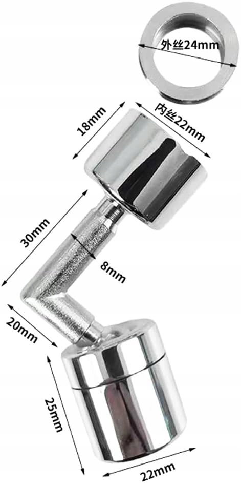 Regulator strumienia wody z kranem, obracany o 720 stopni, kran z gwintem wewnętrznym 22 mm i gwintem zewnętrznym 24 mm, do kuchni/łazienki, nasadka na kran