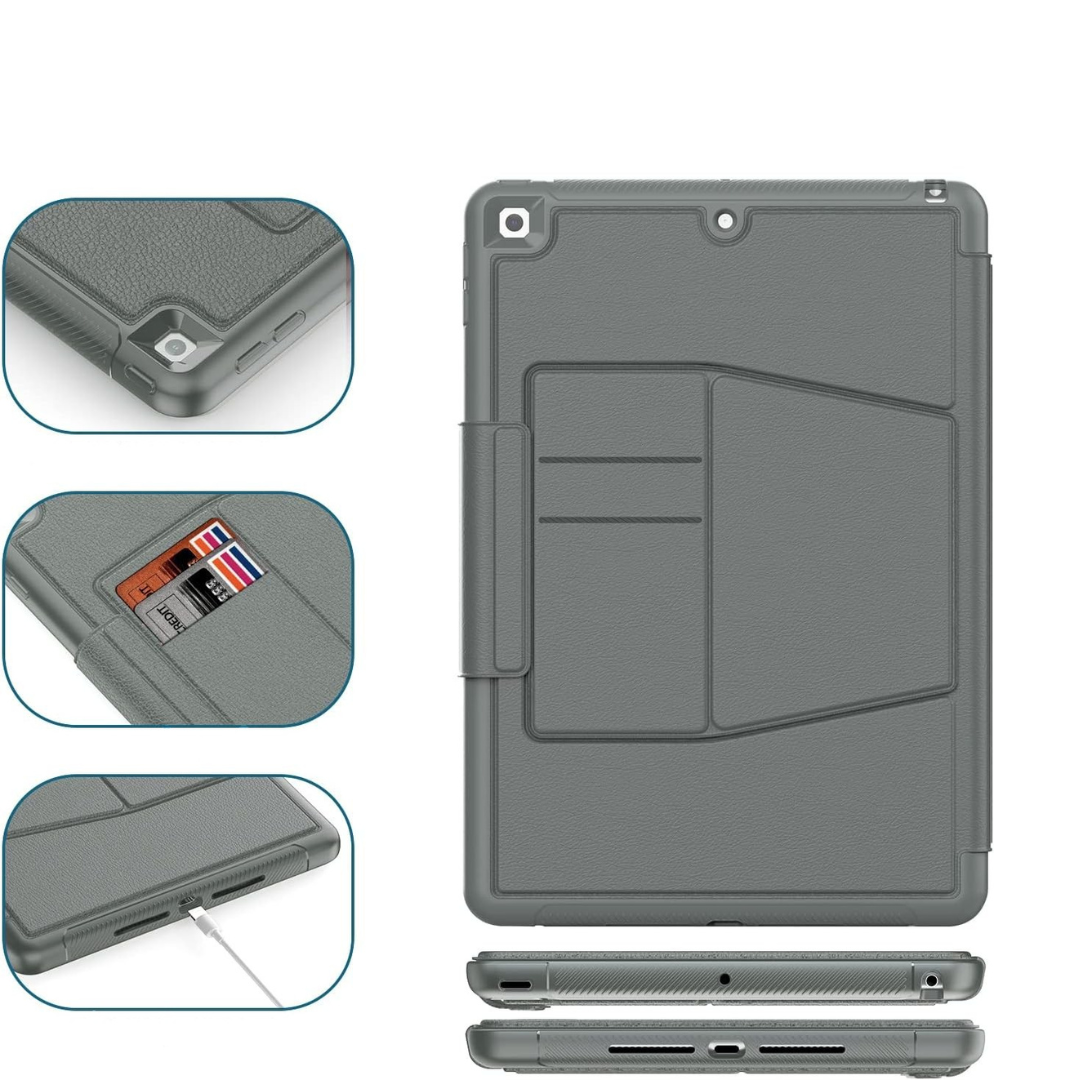 DAORANGE Etui do iPad 9./8./7. Generacji, 10,2 Cala 2021/2020/2019, Wstrząsoodporne ze PU Skóry, Uchwyt na Długopis, 7 Stojak Kątowy, Automatycznie Budzi/Spać (Szary)
