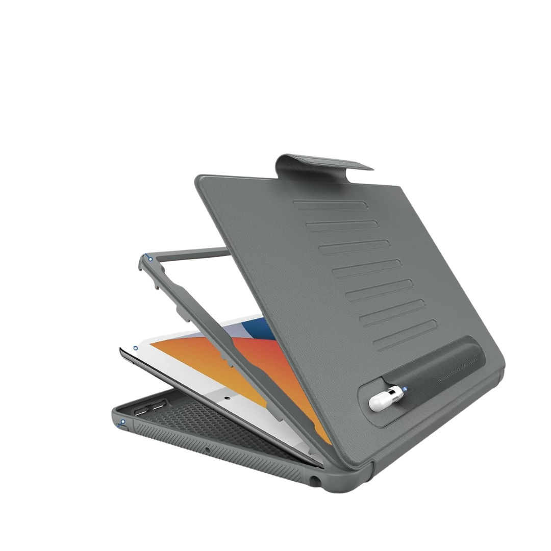 Dzięki regulowanemu stojakowi, etui umożliwia wygodne ustawienie iPada pod różnymi kątami, co zapewnia komfort przy pisaniu, oglądaniu filmów czy prowadzeniu wideorozmów.
