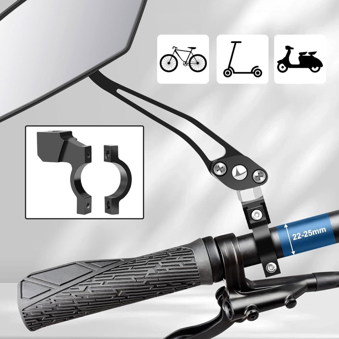 - Szerokie zastosowanie: odpowiednie dla kierownic o średnicy 22–25 mm. W zestawie znajduje się kluczyk, który umożliwia łatwy i szybki montaż na różnych typach rowerów, hulajnogach elektrycznych i motocyklach.