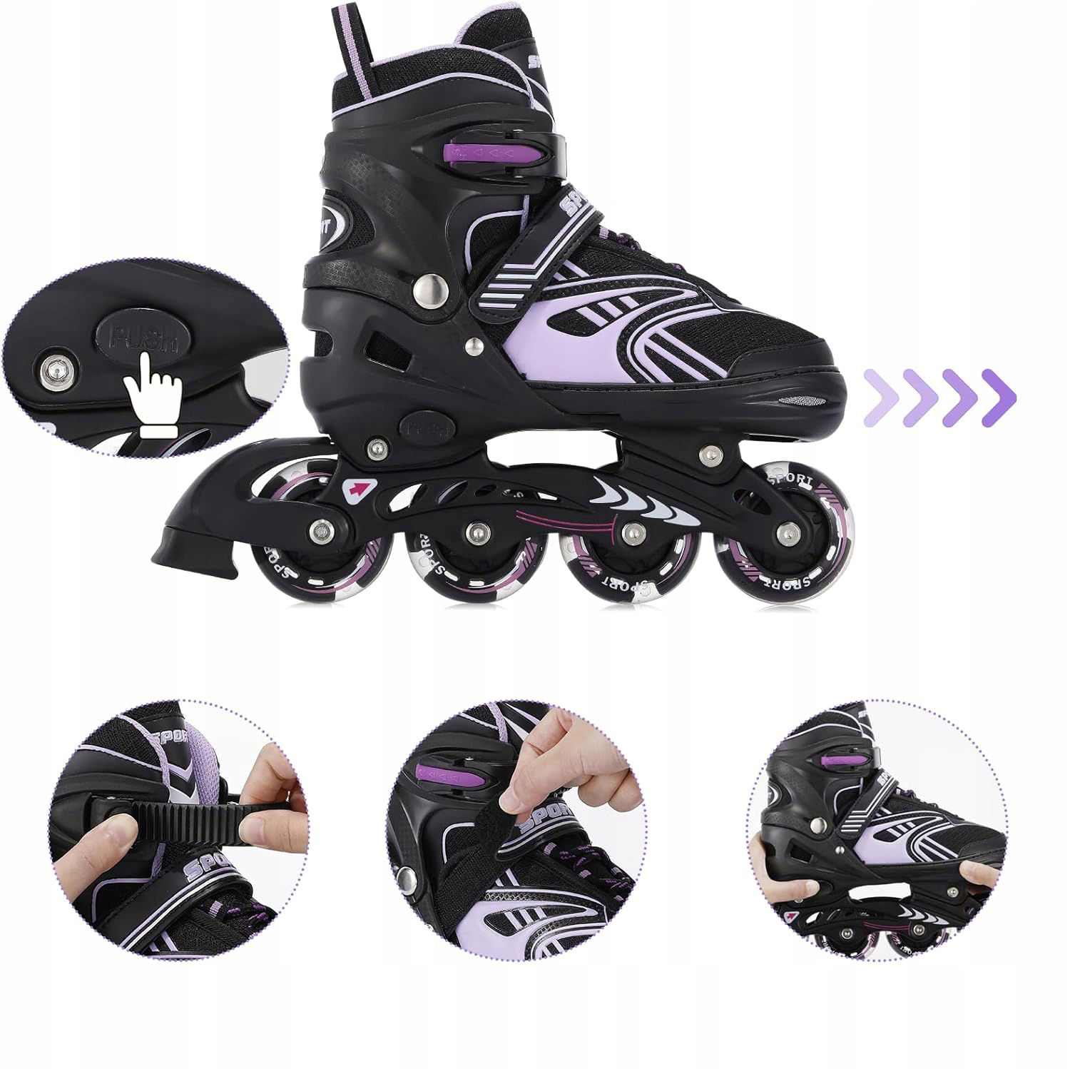 Dzięki 4-stopniowej regulacji rozmiaru, wrotki rosną razem z dzieckiem lub mogą być używane przez dorosłych. To uniwersalne rozwiązanie, które pozwala dopasować sprzęt do stopy, zapewniając komfort i stabilność przy każdym użytkowniku.