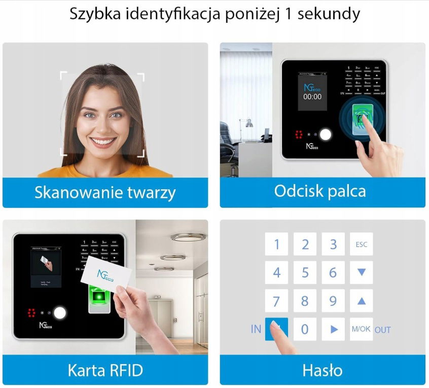 - Kompatybilność z oprogramowaniem NGTeco Time Management.