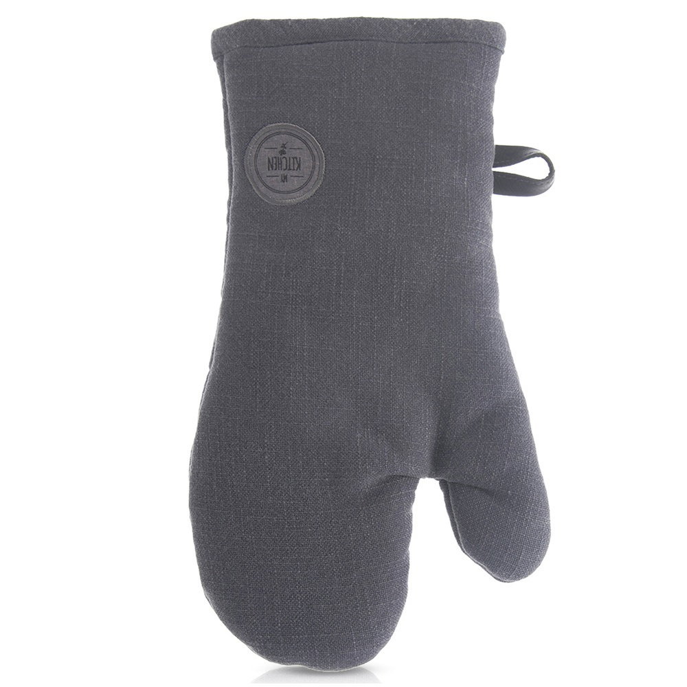 Rękawica kuchenna wykonana z bawełny. Wyposażona w pętelkę do zawieszenia oraz magnes. Wygodna w użytkowaniu, odpowiednio przylega do dłoni chroniąc ją podczas gotowania lub pieczenia przed oparzeniami. Z pomocą rękawicy bez problemu przeniesiemy gorące naczynia.