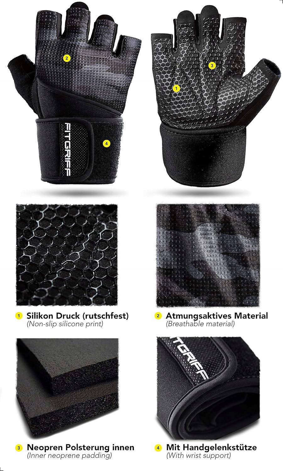 Rękawice fitness Fitgriff® V2 Rękawice treningowe Rękawice sportowe dla mężczyzn i kobiet Rękawice do ćwiczeń siłowych na siłowni