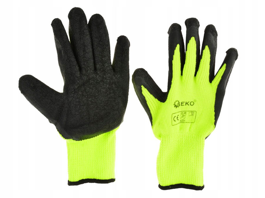 Wysokiej jakości rękawice robocze wykonane z dzianiny bawełnianej, która została powleczona dodatkową warstwą poliuretanu odporną na ścieranie. Dzięki zastosowaniu grubszej warstwy dzianiny wewnątrz z powodzeniem nadają się do prac w okresie zimowym.