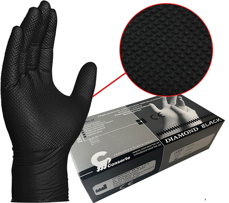 Rękawice gumowe XL nitrylowe teksturowane diament czarne DIAMOND 100 szt