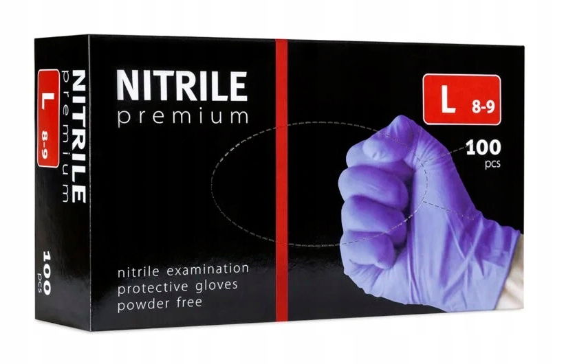Rękawiczki diagnostyczne i ochronne nitrylowe bezpudrowe PREMIUM - rozmiar L