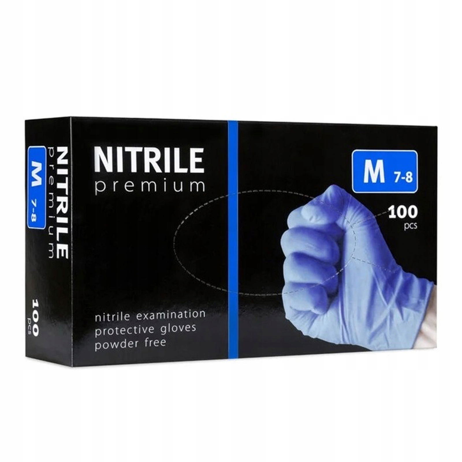 Rękawice rękawiczki nitrylowe PREMIUM bezpudrowe [M] 100 sztuk niebieskie