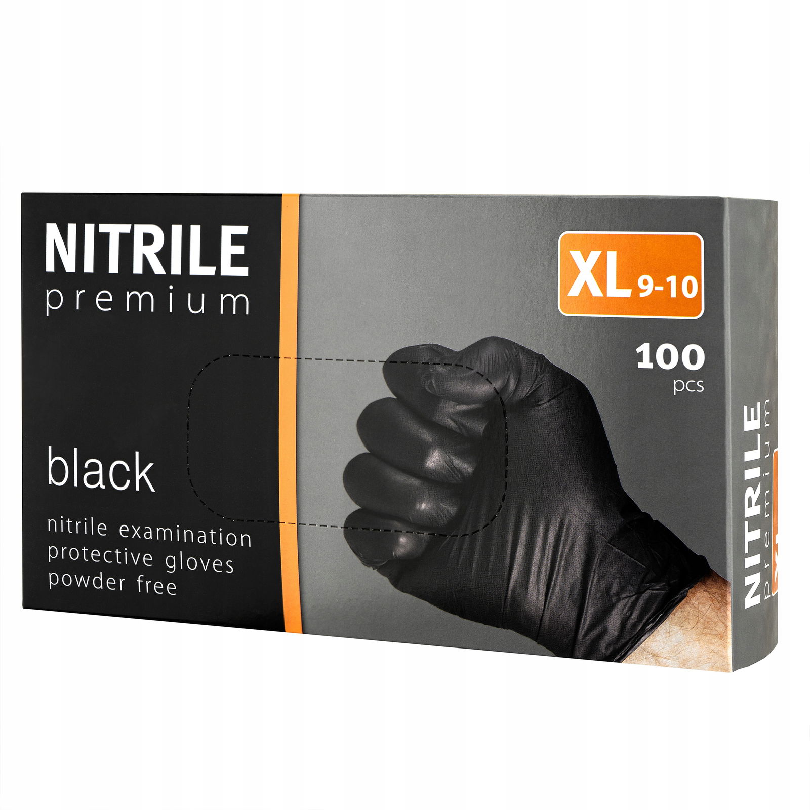Rękawice rękawiczki nitrylowe PREMIUM bezpudrowe [XL] 100 sztuk czarne