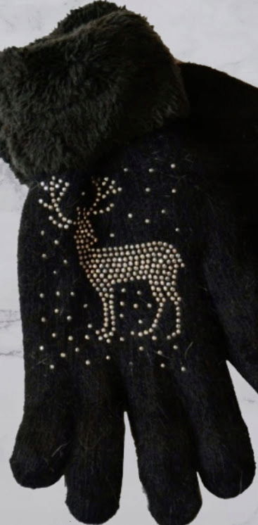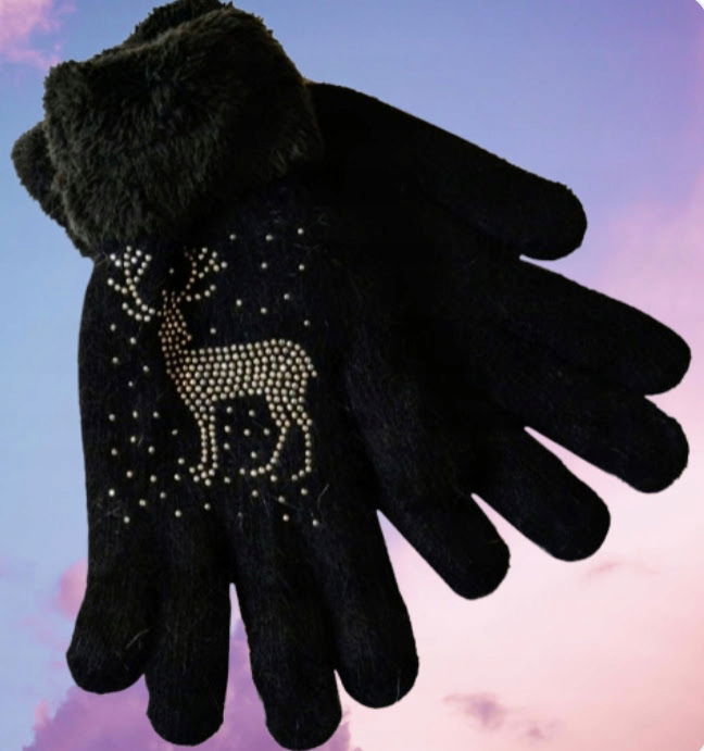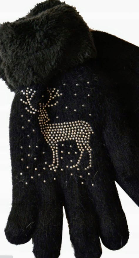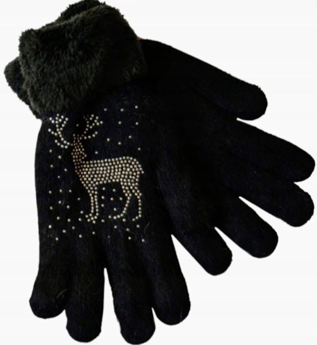 Rękawiczki Damskie Ciepłe Zimowe ocieplane futerkiem Cyrkonie CZARNE