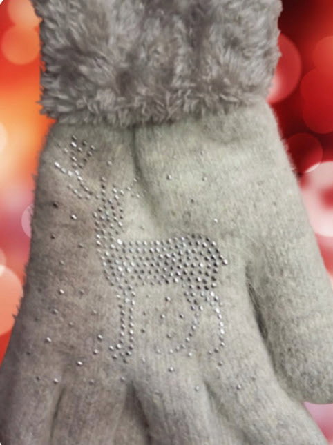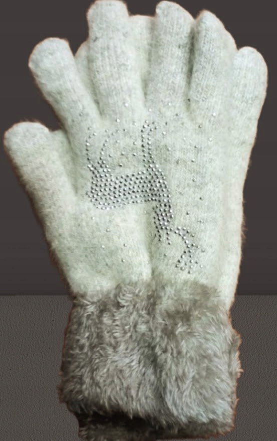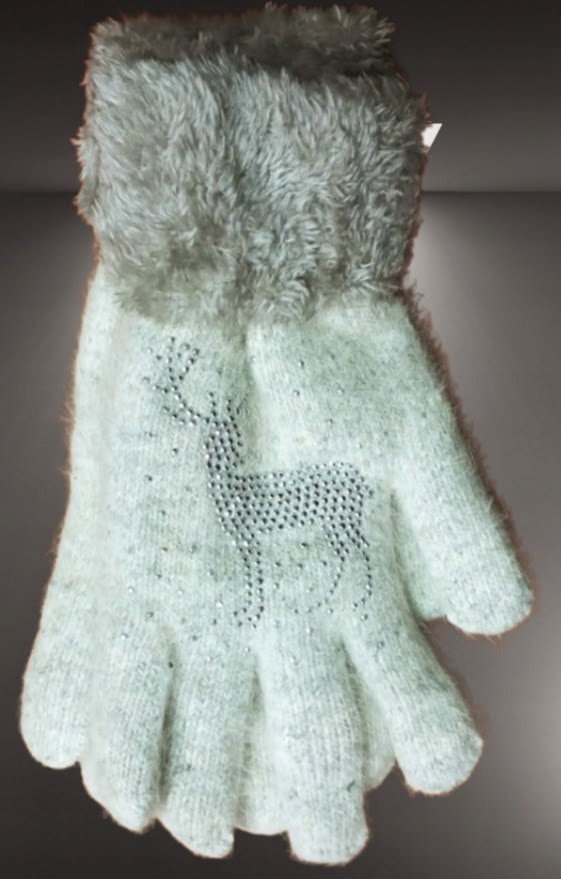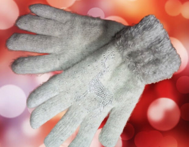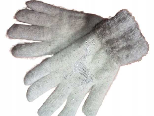 Rękawiczki Damskie Ciepłe Zimowe ocieplane futerkiem Cyrkonie POPIELATE