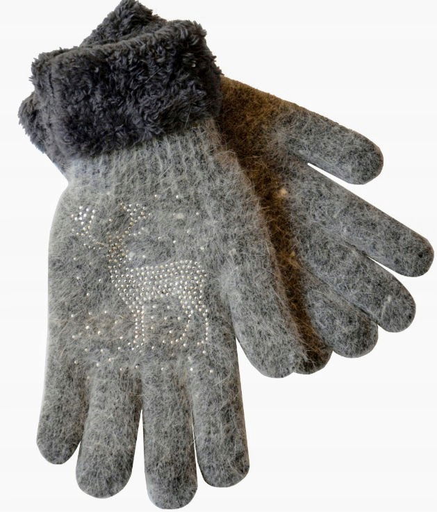 Rękawiczki Damskie Ciepłe Zimowe ocieplane futerkiem Cyrkonie szare